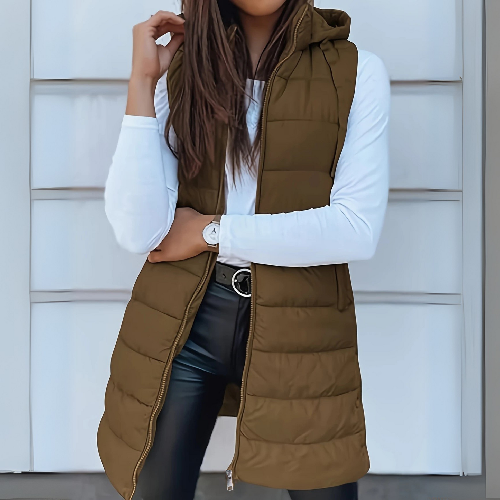 Raine | Casual Sleeveless Hood Long Puffer Vest